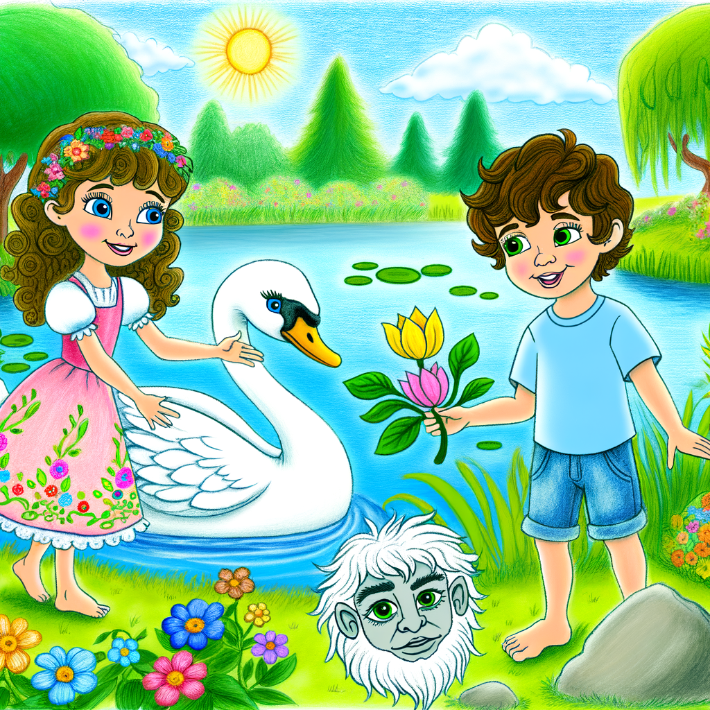 “Look, Tom! There’s a golden swan!” Mia exclaimed.